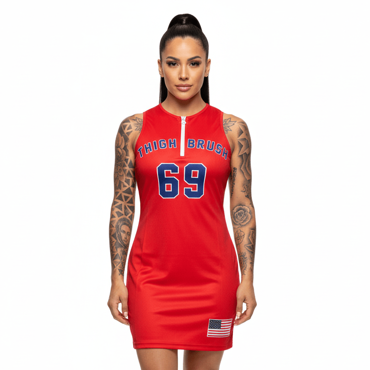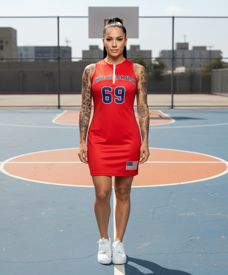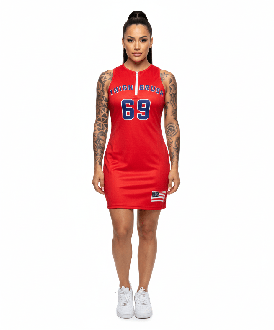 THIGHBRUSH® ATHLETICS - THIGHBRUSH 69 - WOMEN'S BASKETBALL JERSEY DRESS - RED