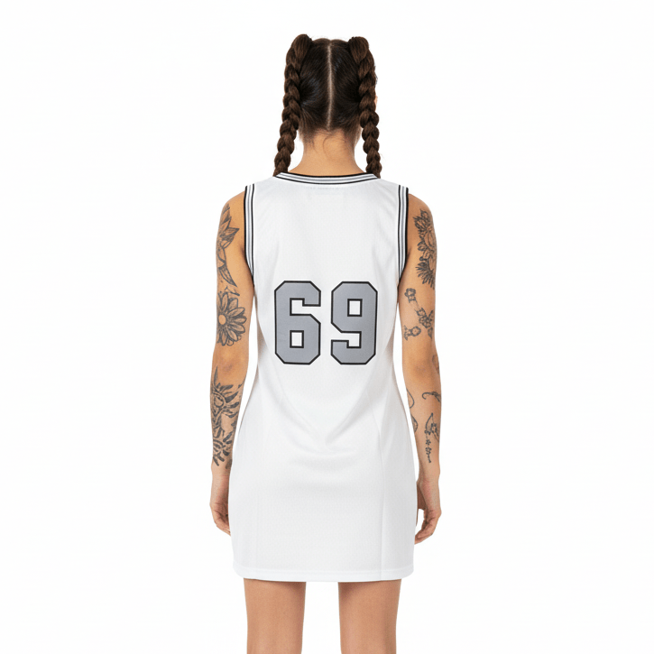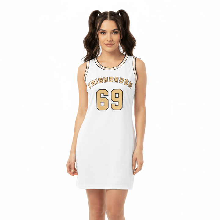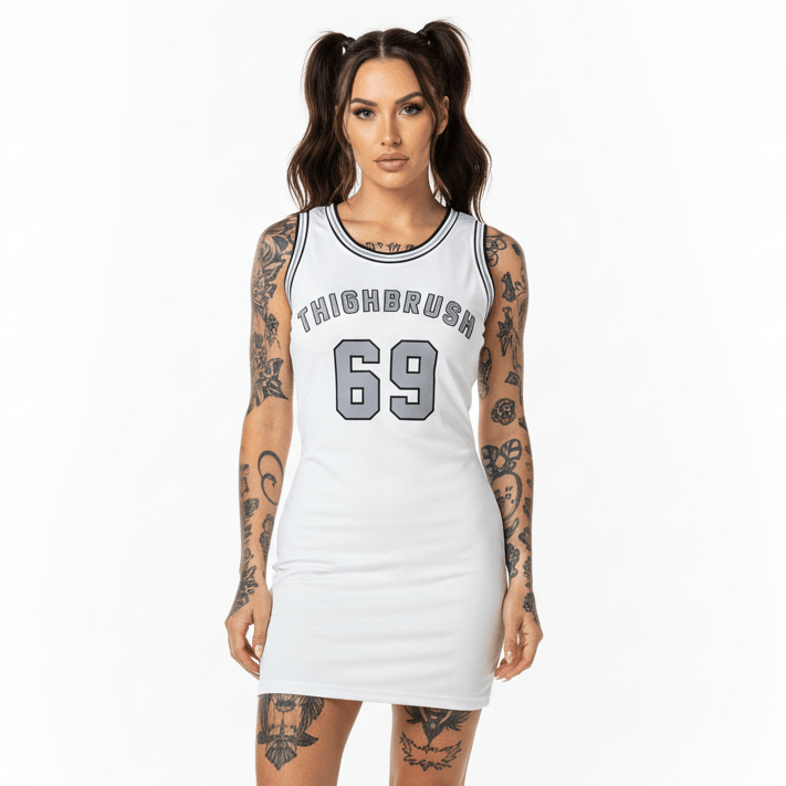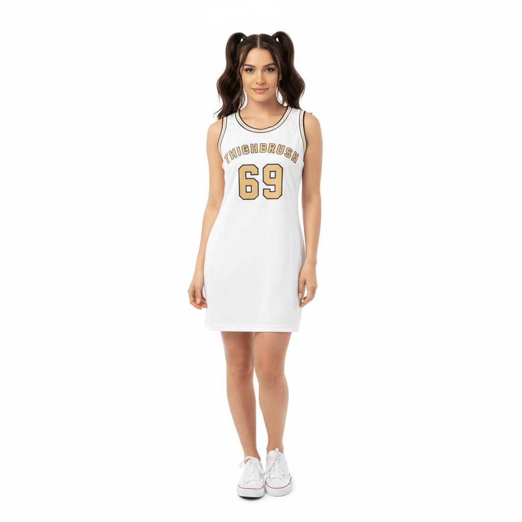 THIGHBRUSH® ATHLETICS - THIGHBRUSH 69 - WOMEN'S BASKETBALL JERSEY DRESS - WHITE