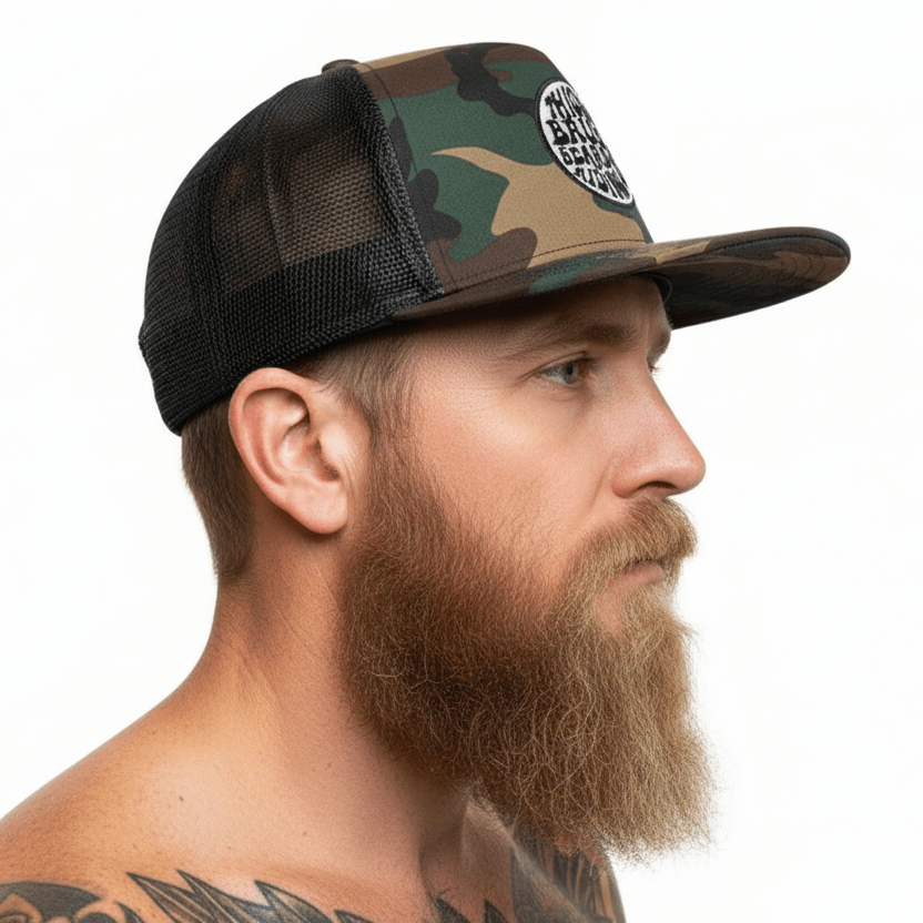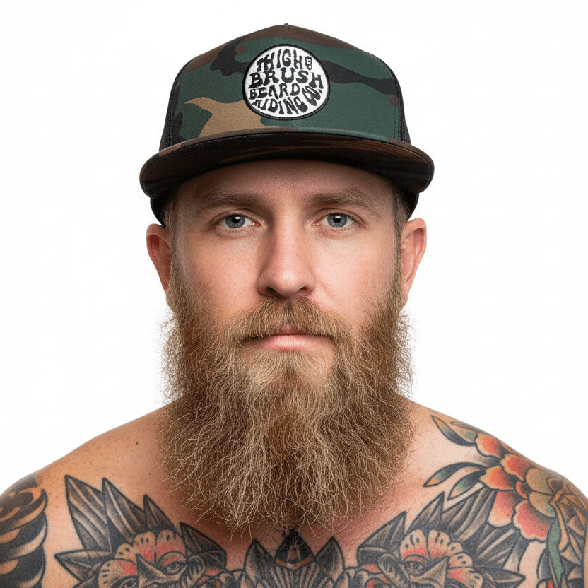 THIGHBRUSH® BEARD RIDING COMPANY - Flat Bill Trucker Snapback Hat - Dark Camo
