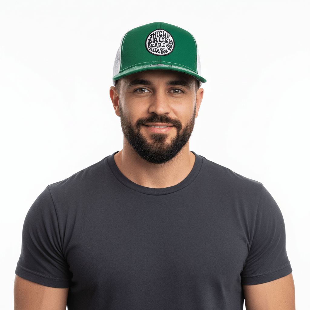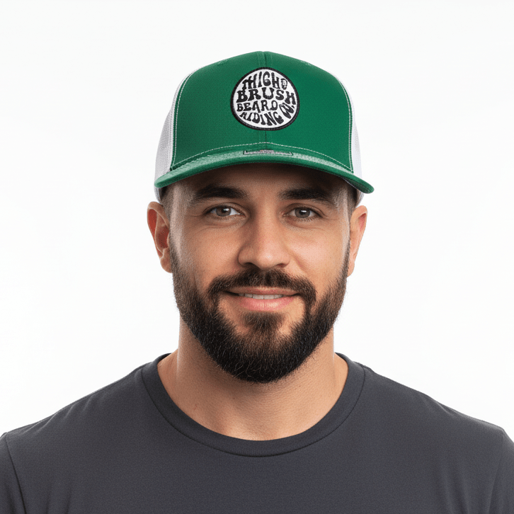 THIGHBRUSH® BEARD RIDING COMPANY - Trucker Snapback Hat - Green and White
