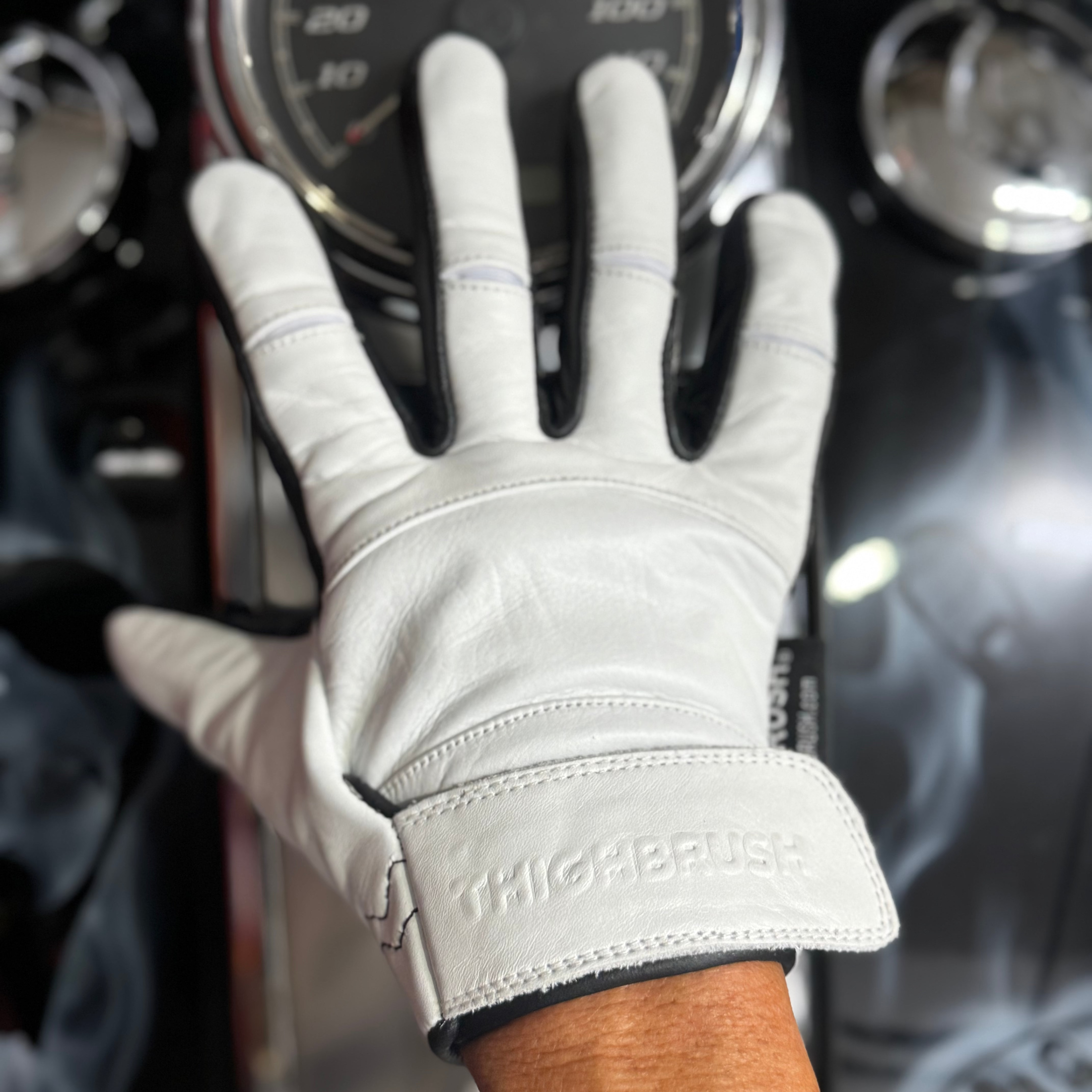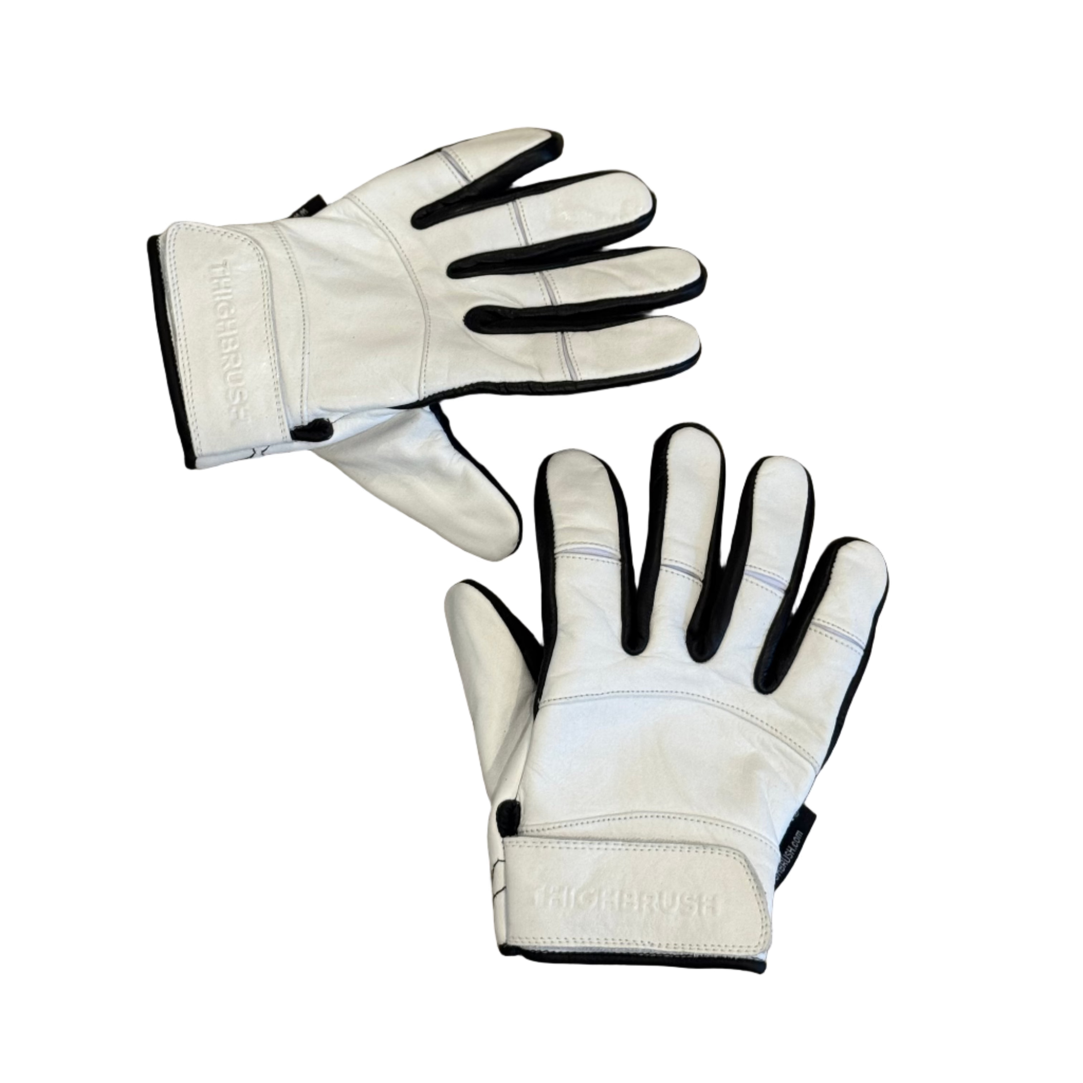 THIGHBRUSH® - Leather Motorcycle Riding Gloves - Black and White