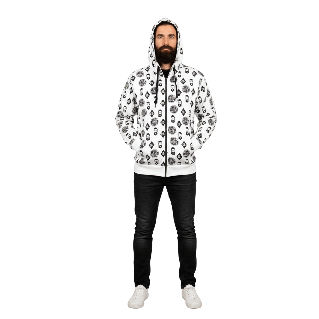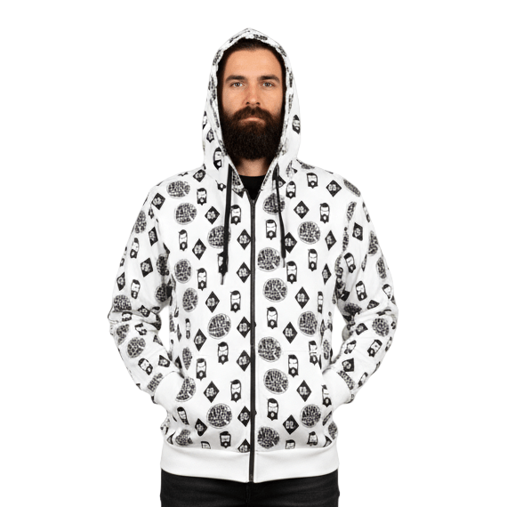 THIGHBRUSH® - LOGO BLAST - UNISEX ZIPPER HOODIE - White