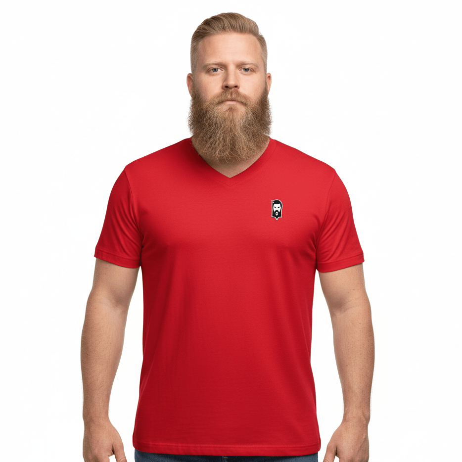 THIGHBRUSH® - Men's Basic V-Neck T-Shirt - Face Logo - Red