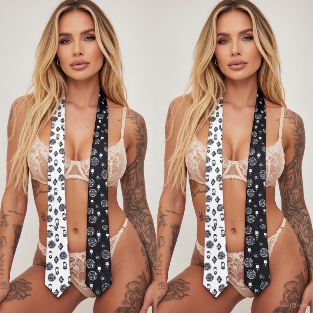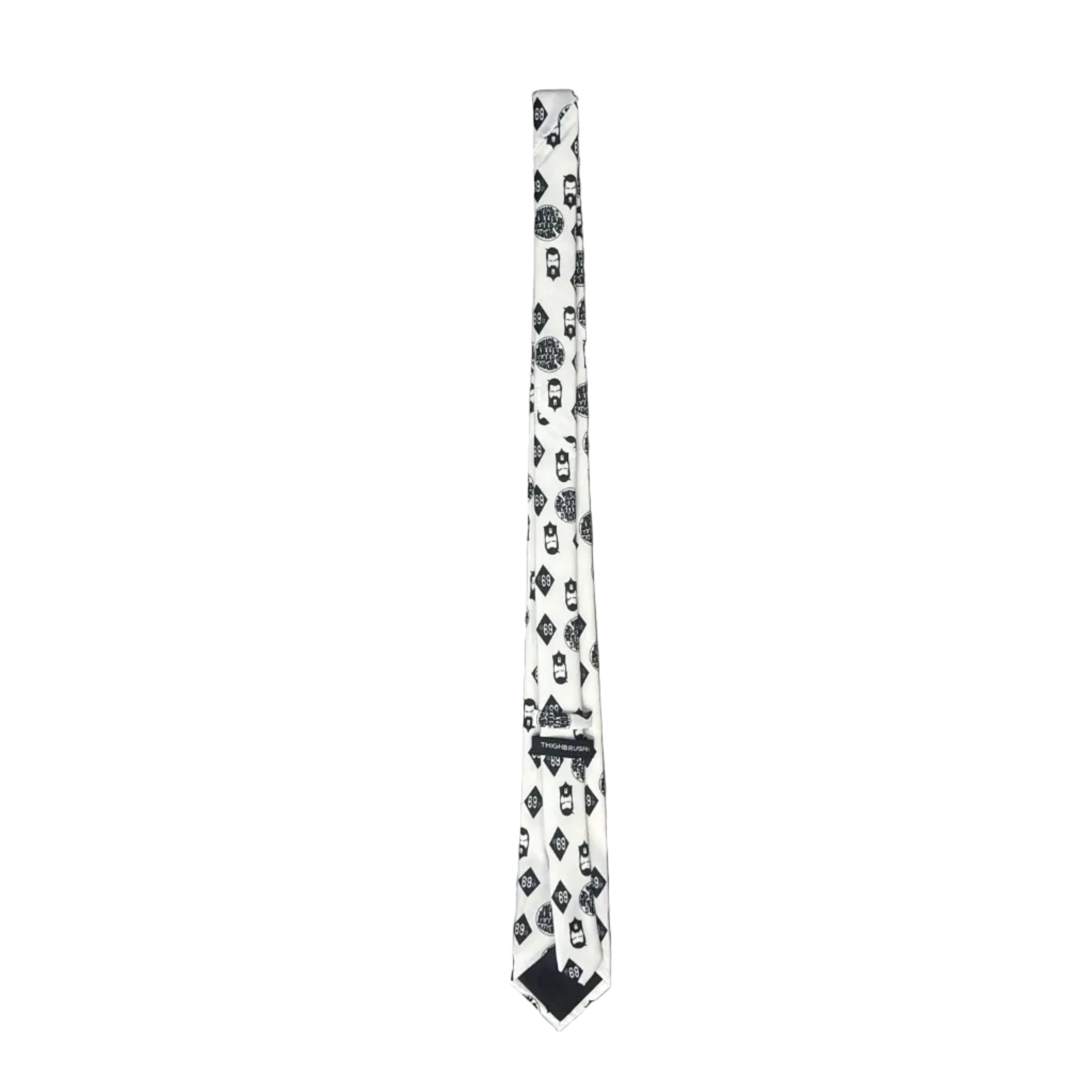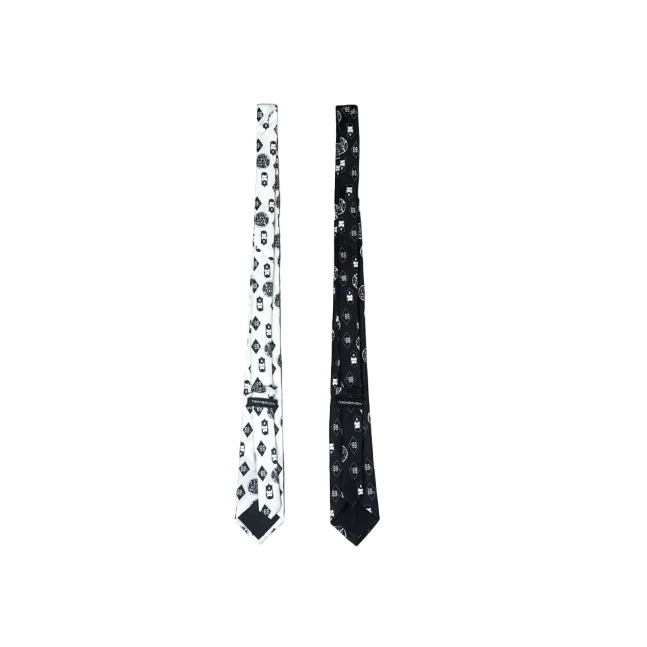THIGHBRUSH® Men's Logo Blast Neckties in Black or White Print. Wrinkle Resistant 100% Polyester Fabric. Machine Washable.
