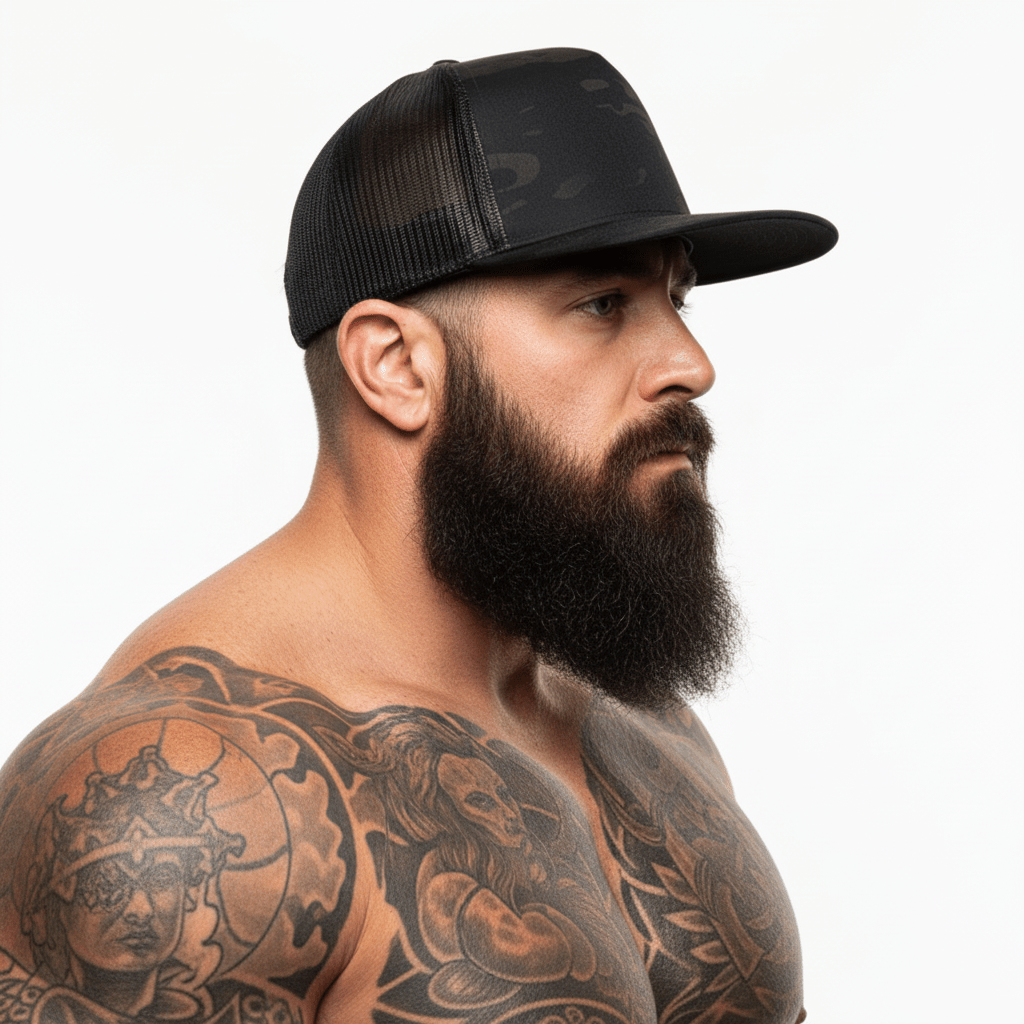 THIGHBRUSH® - Flat Bill Trucker Snapback Hat - Camo - Multicam Black