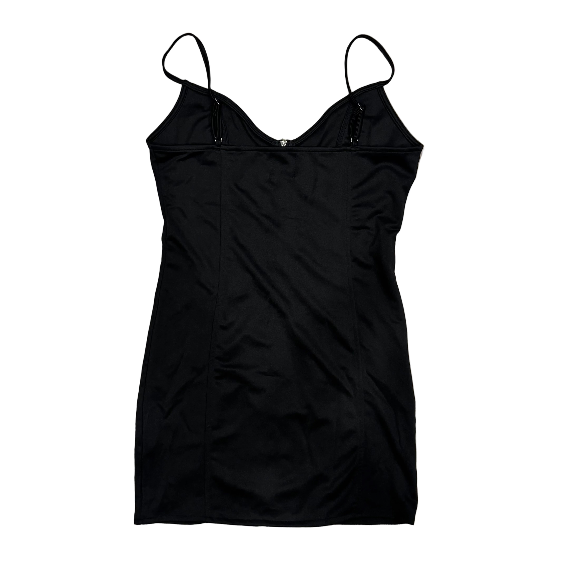 THIGHBRUSH® Women's Full Zip Front Bodycon Mini Dress in Black with Silver Zipper. Super Cute and Sexy! Stretch Polyester/Spandex Fabric. Available in Sizes Small - Large.